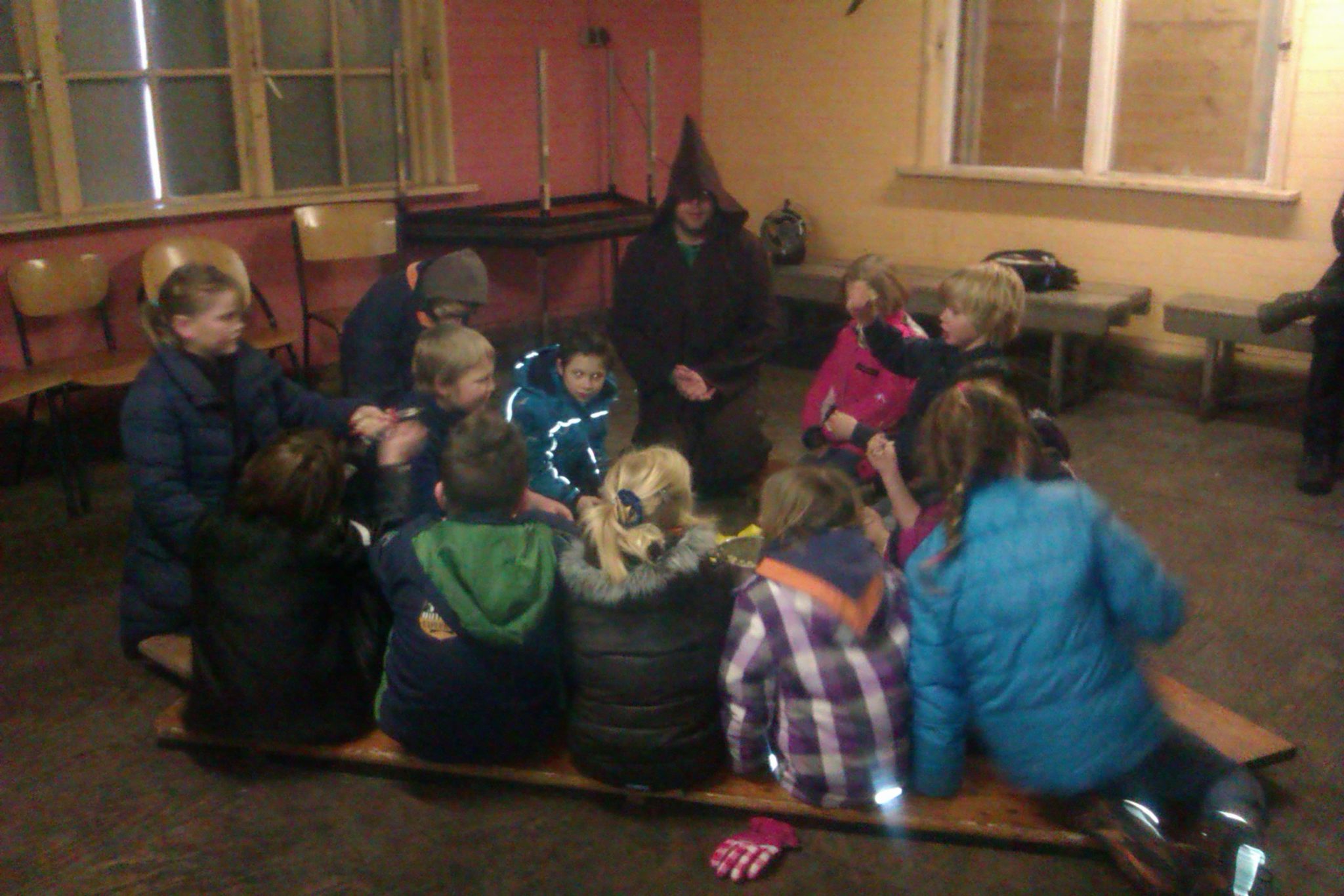 Na de vieze smurrie hebben we het spel de nachtwacht gedaan. Wat kon iedereen een enge geluiden maken zeg!!!