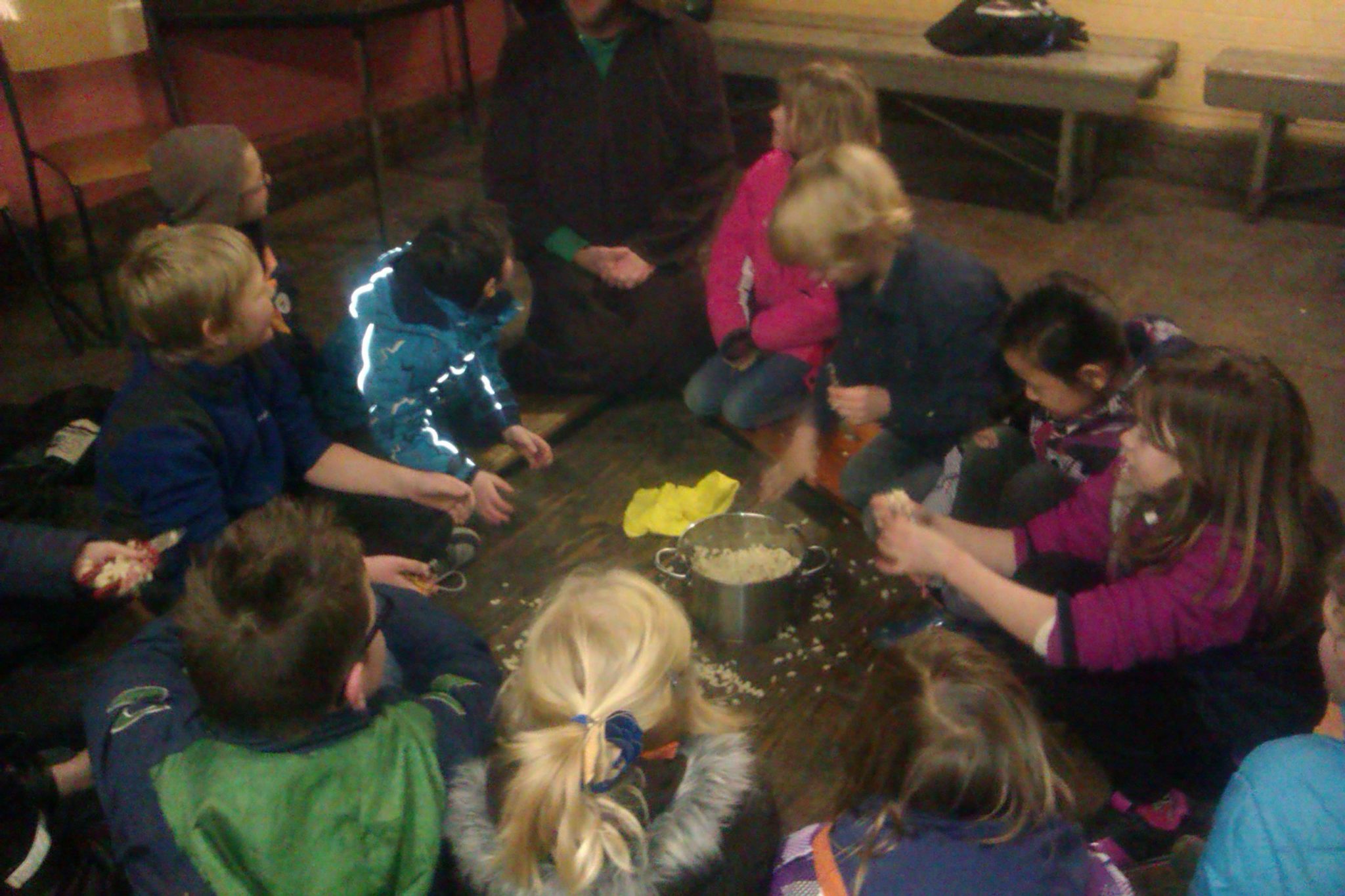 Een opkomst vol gruwelen bij de Robben. We moesten voelen wat er tussen de smurrie in de pan zat. Er zat van alles in: een rode tang, een sleutel, een lepel. De Robben hadden goed gevoeld wat het allemaal was.