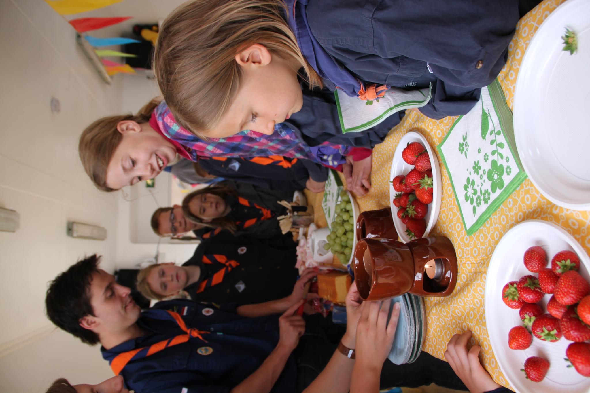Nadat iedereen geïnstalleerd was hebben we nog even lekker genoten van een chocolade fondue.