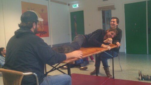 Toen beide groepen aangekomen waren zijn we gaan zwemmen in de Scheg en daar zijn we tot laat in de middag gebleven.